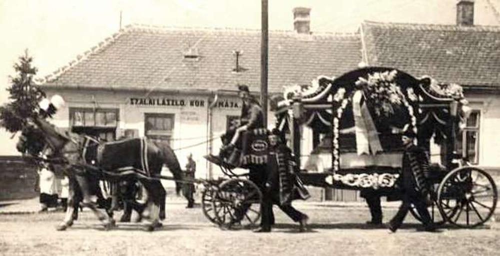 Jáger Sándor temetkezési vállalkozó halottaskocsija a második világháború tájékán
