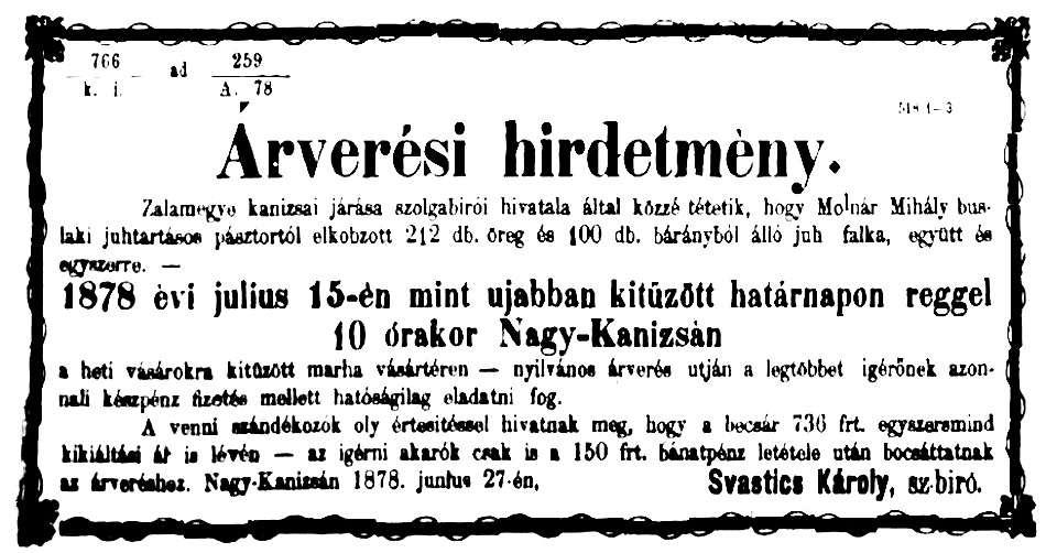 A következő év nyarán Svastits Károly (1832-1896) főszolgabíró a Teleki utcából ide költöztette hivatalát.