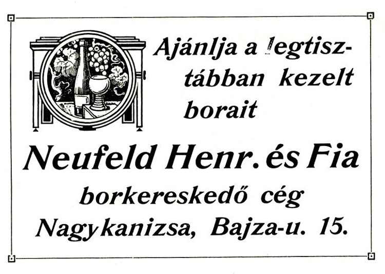•A 20. század elején már Neufeld Henrik bornagykereskedő birtokolta. Itt működött fiával, Ödönnel közös cégük is. Miután az apa 1919-ben (élete 76. évében) meghalt, a vállalkozás Ödön (1872-1931) tulajdonába került.